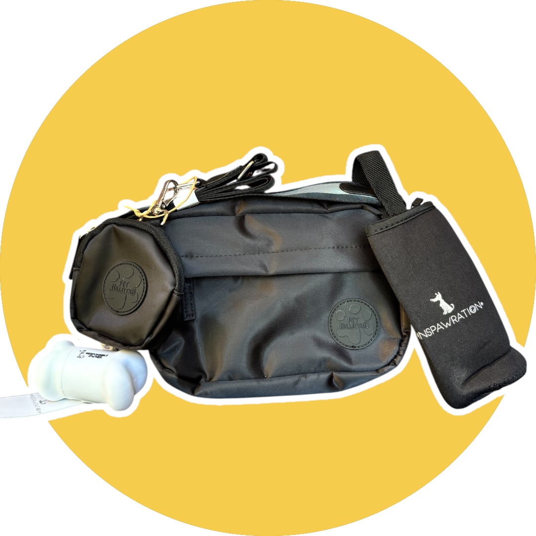 Meet your go-to dog walking bag, designed for ultimate convenience. Pick your favorite color: classic Black or versatile Olive. It’s perfectly equipped with an attached dispenser for poop bags (or you can tuck it inside) and a handy external bottle holder, so you have everything you need right at your fingertips.